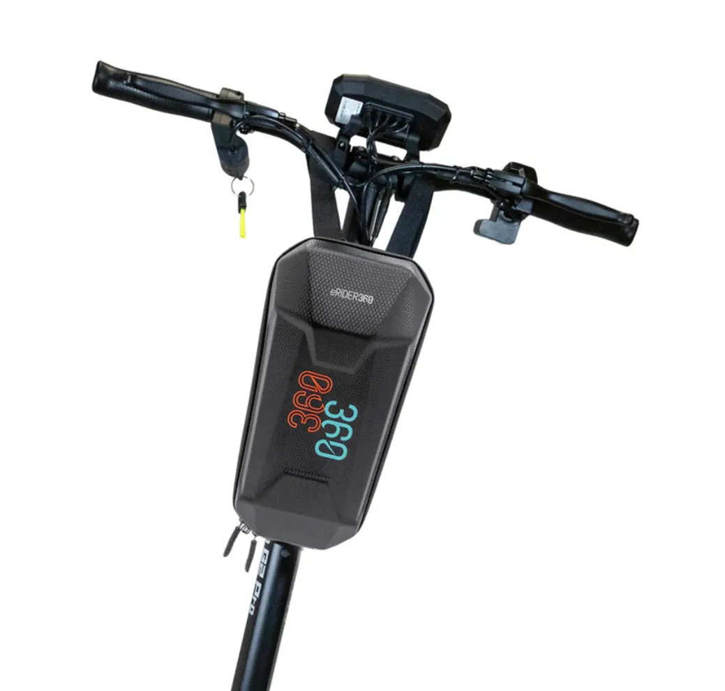 Elektritõukeratta lenksukott veekindel eRIDER360. Kott elektrilisele tõukerattale kinnitub reguleeritavate krõpsudega (takjapaelad) elektrilise tõukeratta lenksu ja steereri toru (lenksutoru) ümber ning sobib ideaalselt kõigile elektritõukeratastele. Mõnel elektritõukerattal võib takjapaelte pikkuse tõttu jääda see lenksukott varjama esituld, kui esituli on paigaldatud lenksu alla.