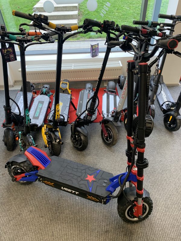 Uueväärne, väikese läbisõiduga elektriline tõukeratas. Kasutatud saalinäidisena.